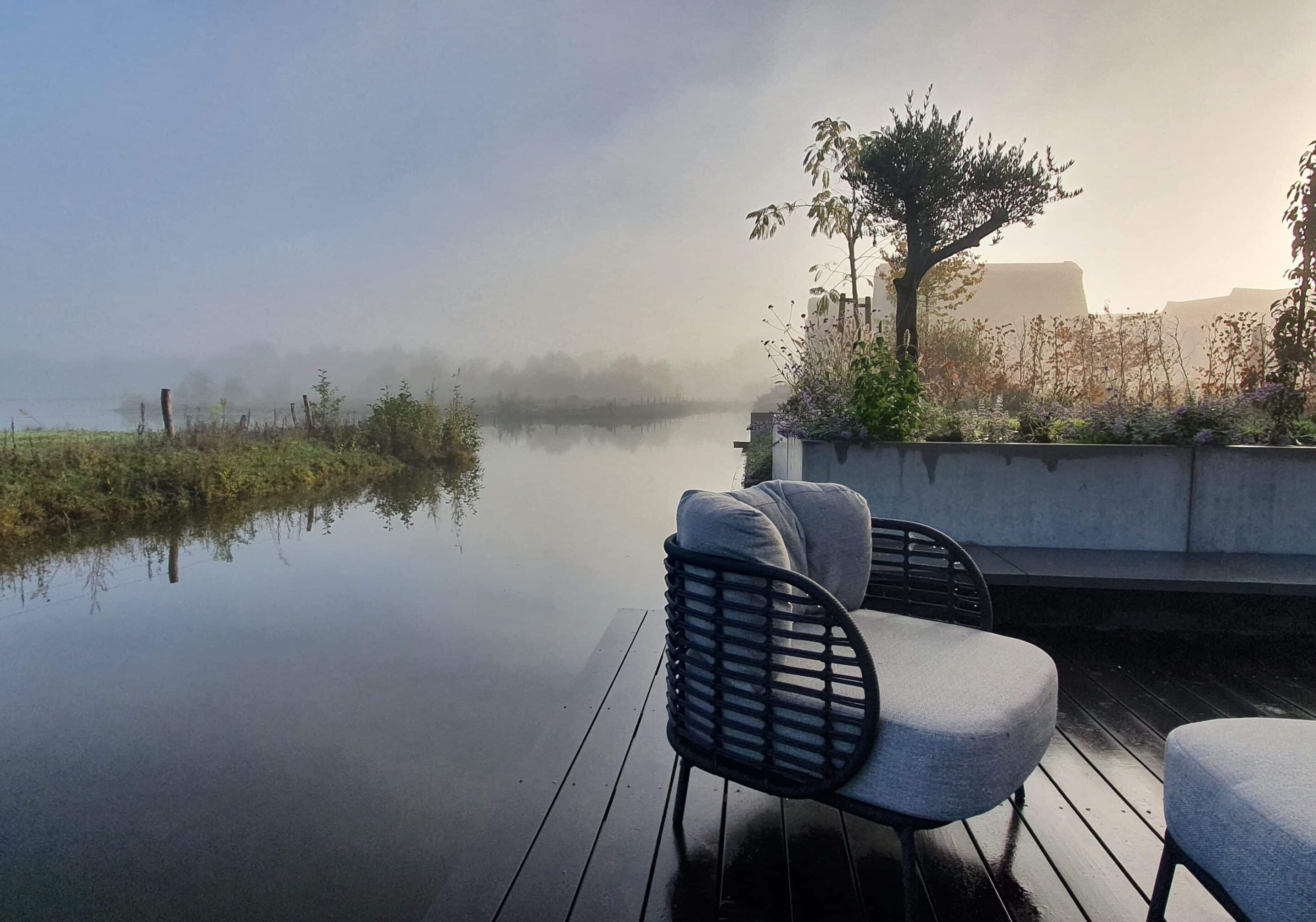 Voor deze prachtige nieuwbouwvilla hebben wij de tuin rondom mogen ontwerpen en aanleggen. Terrassen van oud hollandse tegels en deze in grote uitvoering ook in de oprit verwerkt. De paden zijn gemaakt van castle grind wat opgesloten wordt door cortenstalen randen. Een mooi groen gazon en veel groene borders maken deze tuin tot een plaatje. Daarbij heb je vanuit deze tuin een prachtig uitzicht op het achterliggende natuurgebied. Wij hebben nog een zitkuil aan het water gemaakt welke mooi wegvalt in de tuin. Door met zoveel beplanting en halfverhardingen te werken kunnen wij goed het gevallen water terug laten zakken in de grond en hoeft dit niet afgevoerd te worden. Dit is goed voor de waterstand en voor de beplanting.